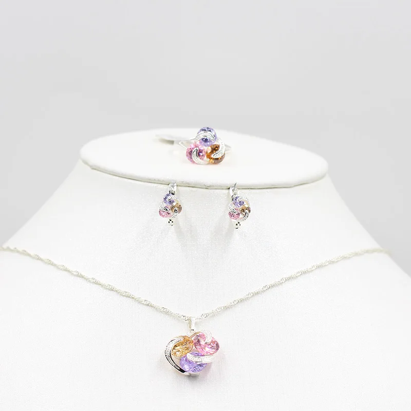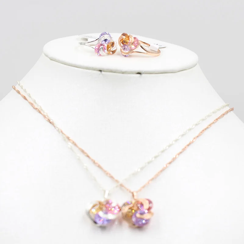 Розовое золото, 3 цвета, AAA циркон, ожерелье, серьги, кольцо, ювелирный набор, для невесты, 585, золотое ожерелье, серьги, кольцо, модные, женские, праздничные, вечерние, серебряные, Кристальные, с кисточками, модные ювелирные изделия