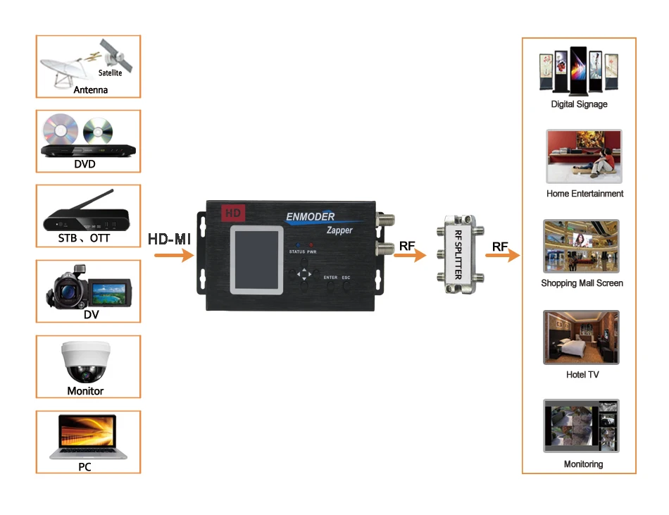Этот модулятор используется для подачи аудио-видео сигналов через разъем HD-MI в коаксиальный кабель