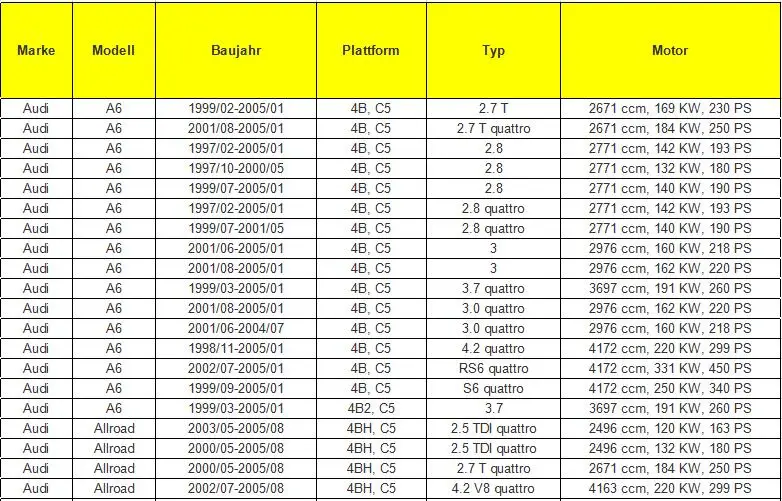 AUDI A6 (4B2, C5) (1997/01 - 2005/01)