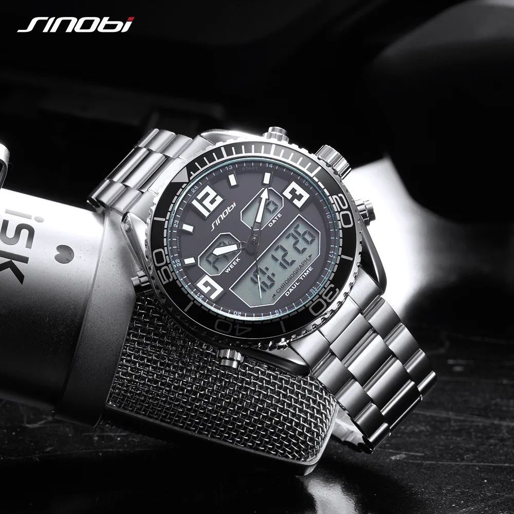 Роскошный Модные Классические мужские часы с двойным циферблатом и ремешком из нержавеющей стали