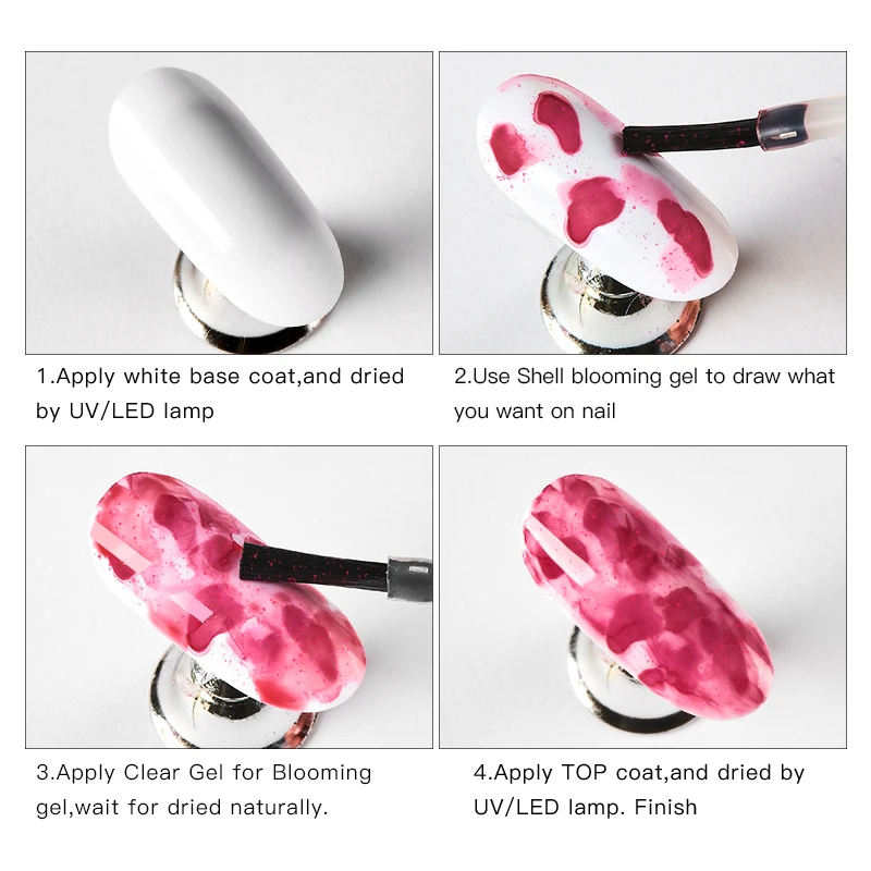 Шаг 2: Нанесите один слой цветущего лака для ногтей, подождите 1-2 минуты, цвет лака для ногтей будет расцвести.