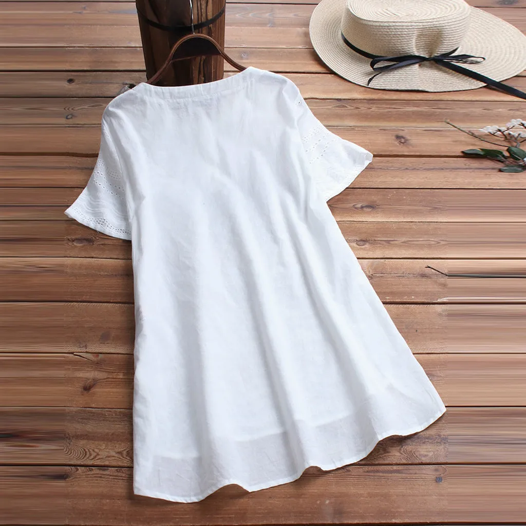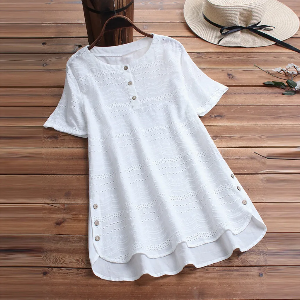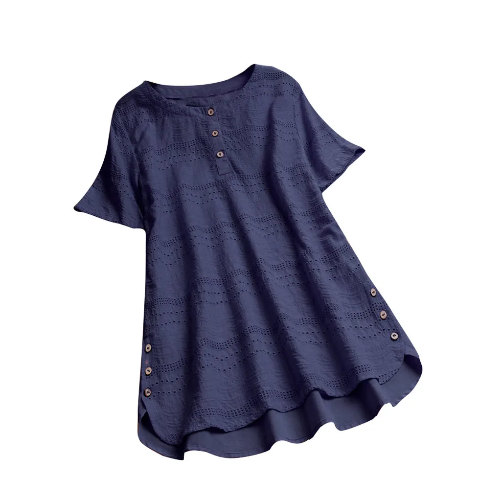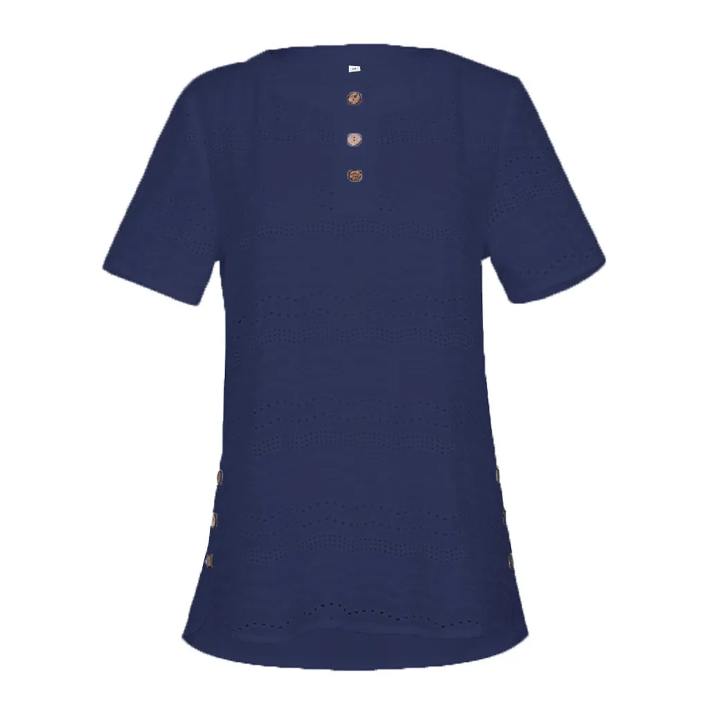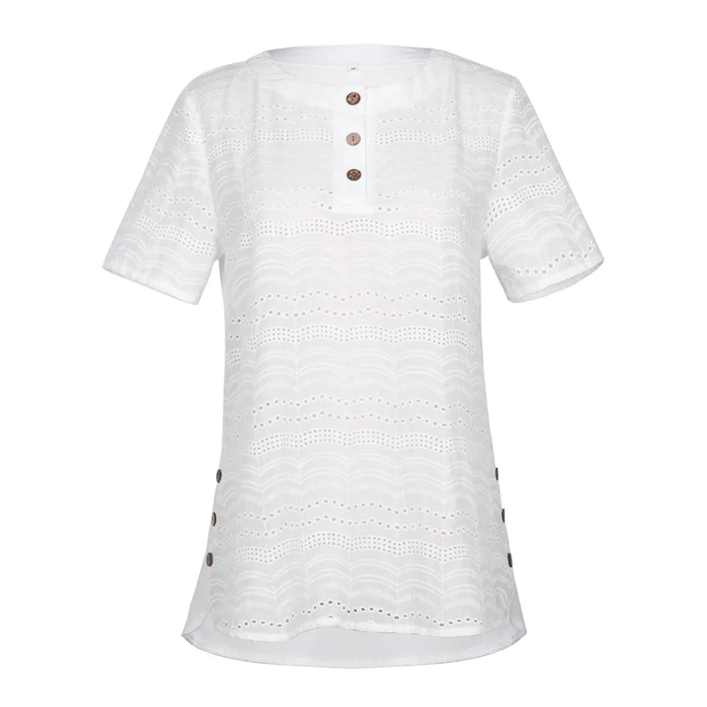 Женская винтажная Повседневная открытая футболка с круглым вырезом и короткими рукавами на пуговицах