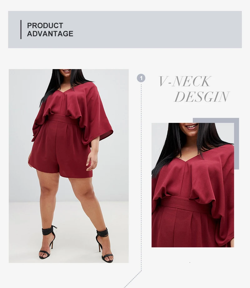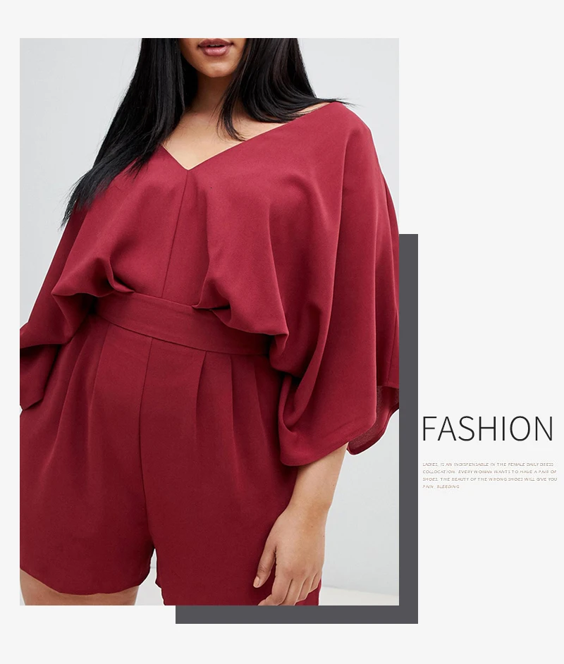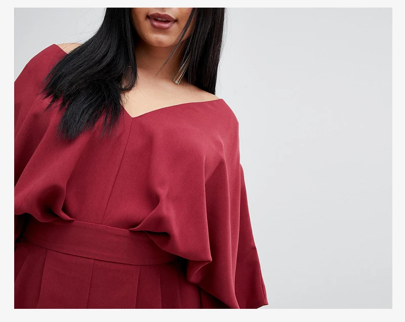 Женский комбинезон HDY Haoduoyi простой красный плиссированный с длинным рукавом и