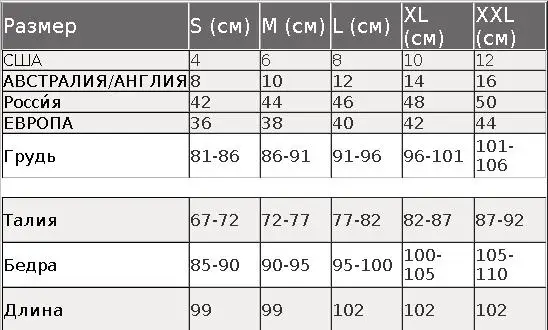 ТАБЛИЦА РАЗМЕРОВ