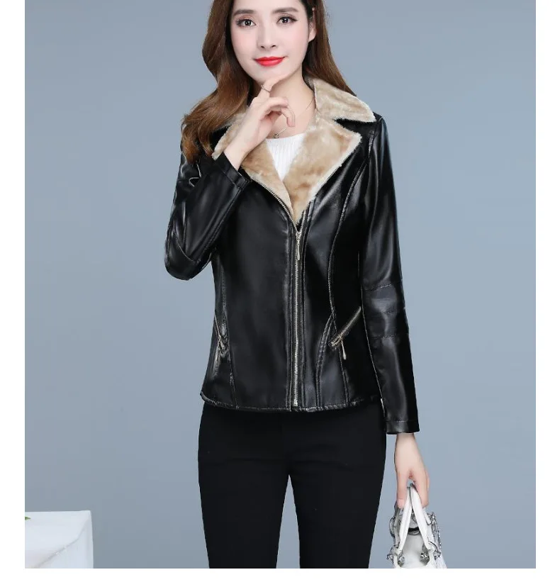 Женская короткая приталенная мотоциклетная кожаная куртка с принтом в Корейском