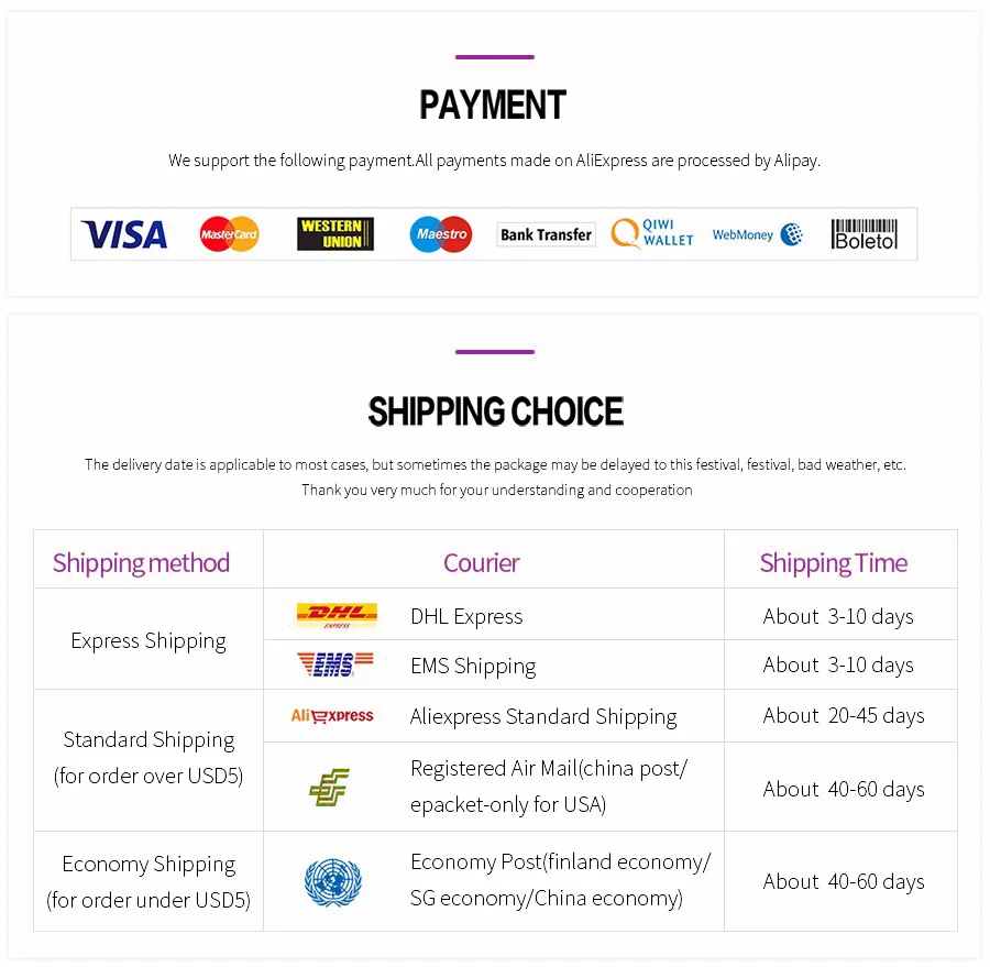 После получения вашего заказа, мы выполним изготовление на заказ и доставку в течение 48 часов. Если у вас есть какие-либо проблемы, такие как логистика не может быть проверена, посылка потеряна, пожалуйста, свяжитесь с нами напрямую, мы решим проблему для вас. Мы не дадим вам ничего потерять.