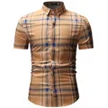 Новинка лета 2019 мужская пляжная гавайская рубашка с коротким рукавом, хлопковая Повседневная рубашка в клетку + 3XL Мужская модная одежда 25 цветовUSD 7,49-8,40/шт.