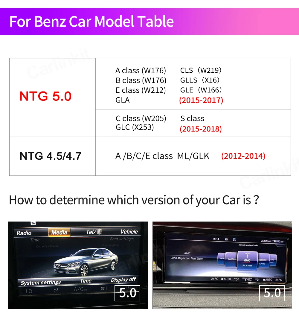 Для benz 2015-2018 (5,0 System)A/B/C/E/ML/GLA/GLK