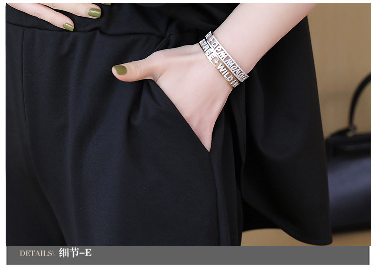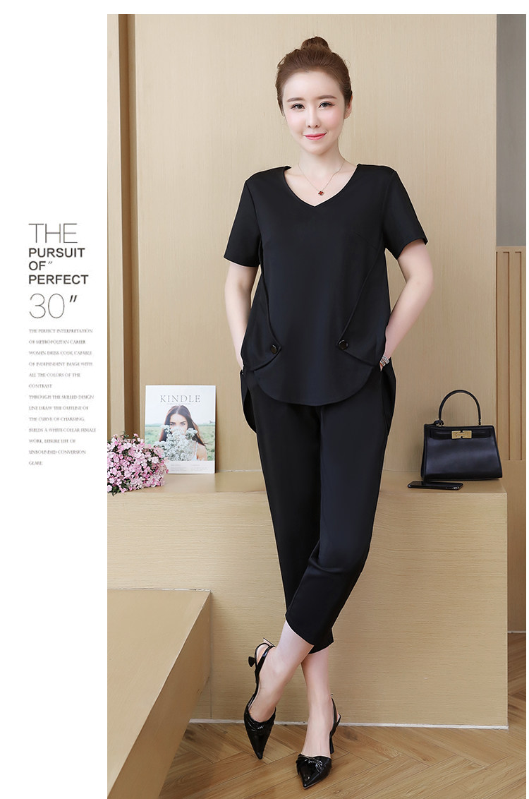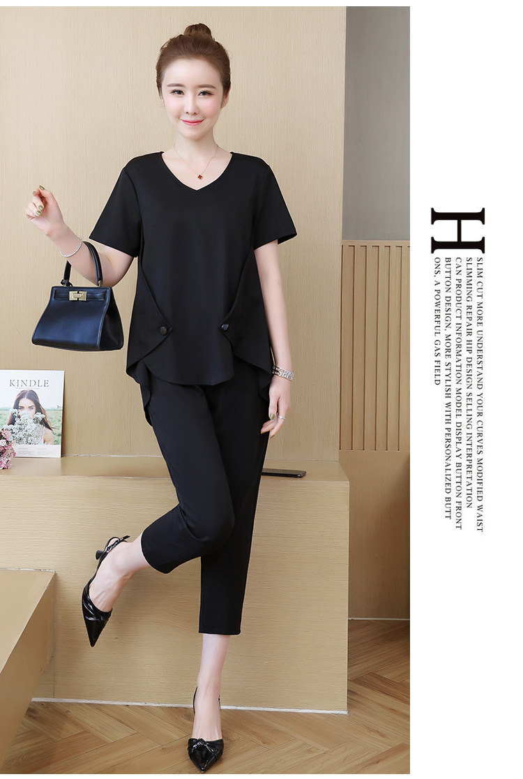 Женский костюм большого размера, комплект из 2 предметов, короткий топ и штаны, 2019 Летний темперамент, Женский комплект одежды большого размера, черный LJ782