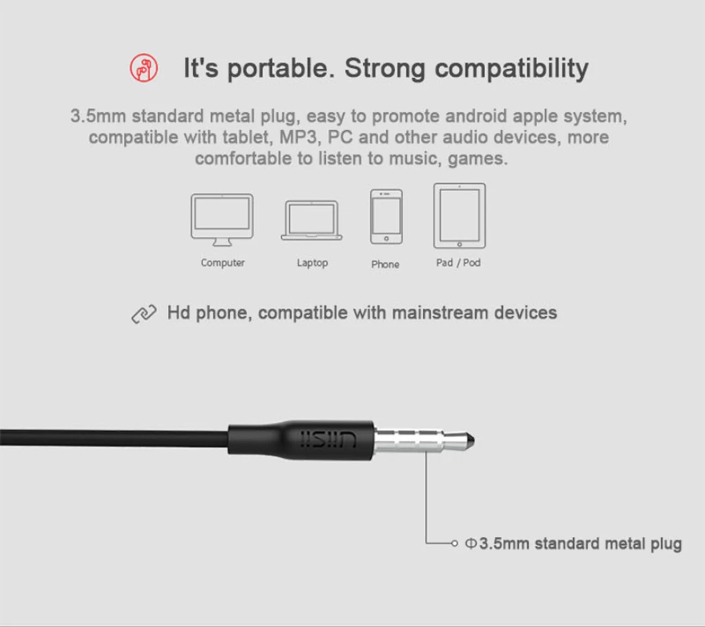 Полупроводные наушники UiiSii U9, удобные наушники в ушах, подходят для занятий спортом, разъем 3,5 мм, Высокочувствительный беспроводной микрофон, подходит для IOS и Android