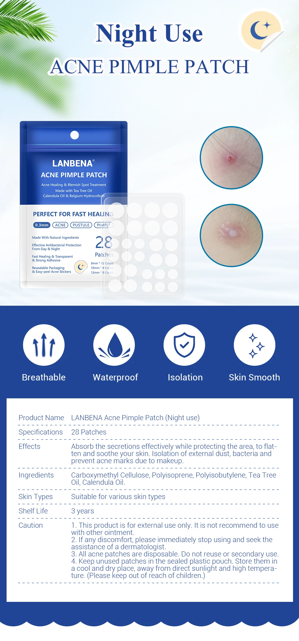 Название продукта: пластырь для прыщей от акне LANBENA (ночное использование)
