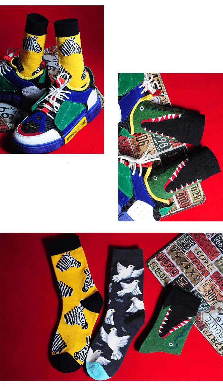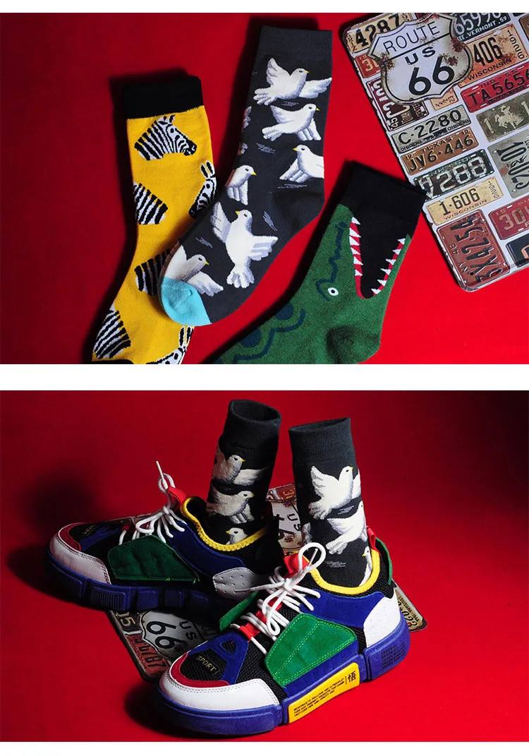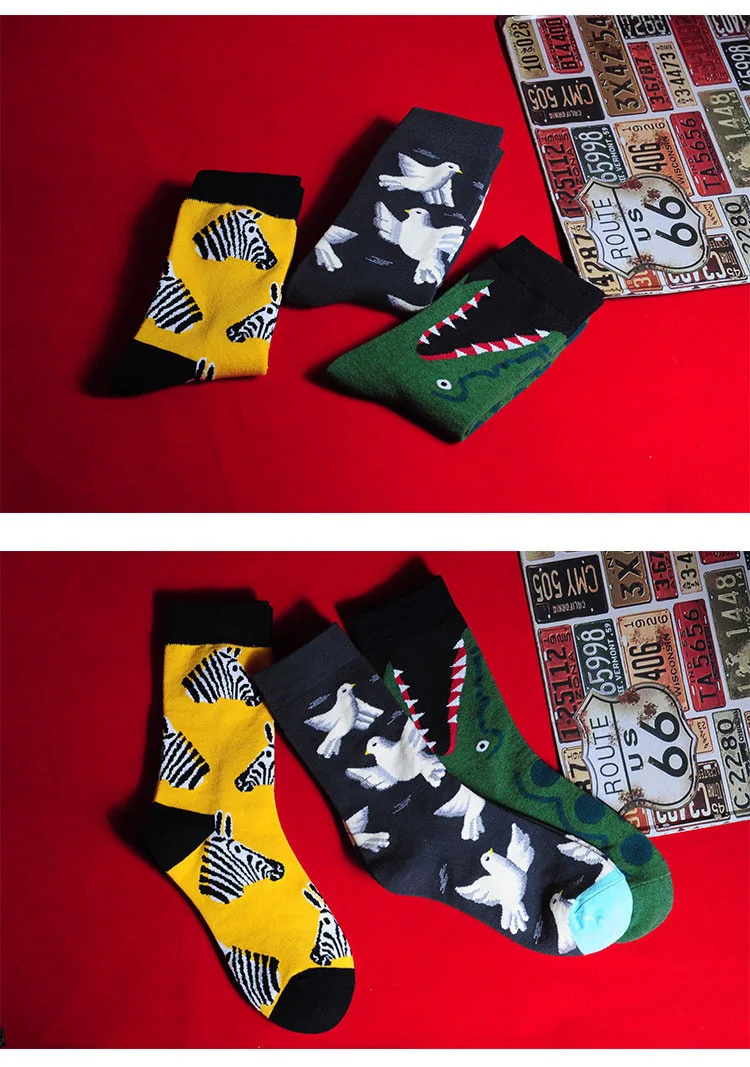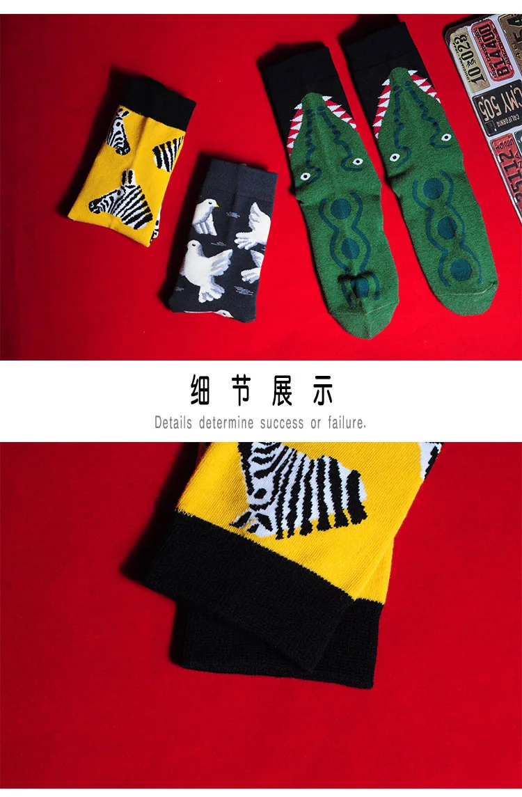 V-Hanver Для мужчин Мода Harajuku одежда с принтом героев мультфильмов, крокодил, Акула Зебра рисунком цветов и птиц, яркие носки для малышей; мягкие и удобные хлопковые носки Happy