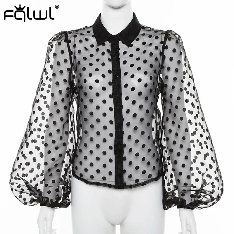 Женская блузка с рукавами-фонариками FQLWL, белая, черная, прозрачная Повседневная шифоновая блузка в горошек