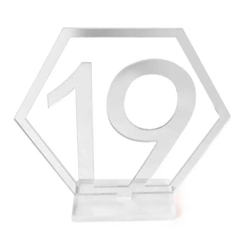 Особенности:1. Экологически чистый акрил с тонкой обработкой, гладкая зеркальная поверхность, износостойкая. 2. Идеально подходит для гостей, когда они прибывают на свадьбу или вечерние. 3. Стабильное основание может прочно стоять на столах, не легко упасть, удобно использовать. 4. Полый дизайн с шестигранной формой делает прекрасное украшение. Характеристики: Материал: акрил Цвет: золотой, серебряный Один цифровой Размер: 11*10,2*0,15 см Размер пола: 5,3*3*0,4 см Тип: No.1-10, No.1-15, No.1-20 Включает: 1 набор символов шестиугольных чисел таблицы Примечание: В связи с различиями мониторов и эффектами освещения реальный цвет товара может немного отличаться от цвета на фотографиях. Спасибо! Возможны отклонения в 1-3 мм вследствие измерений вручную.