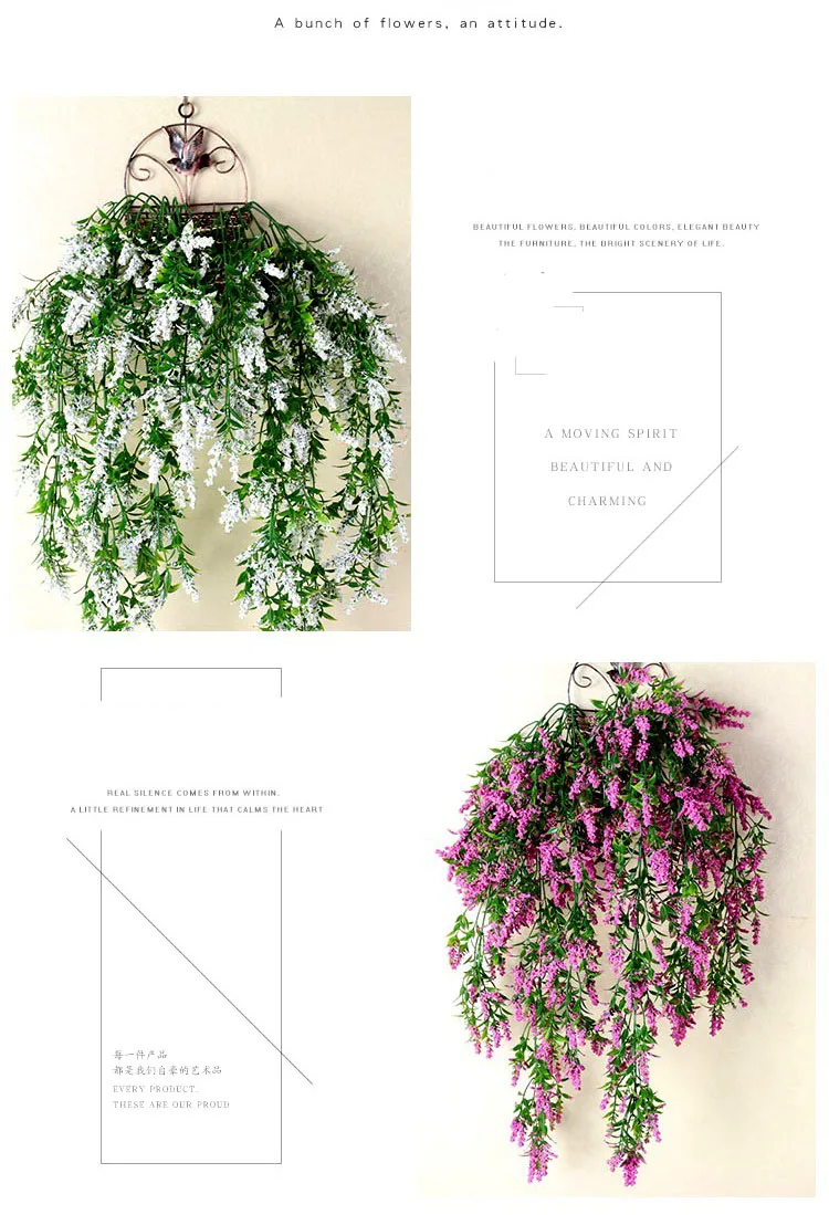 Искусственные растения, ненастоящие цветы из ротанга, лоза, зеленое растение, украшение в виде листьев, новые Лавандовые настенные украшения в виде цветов AQ140