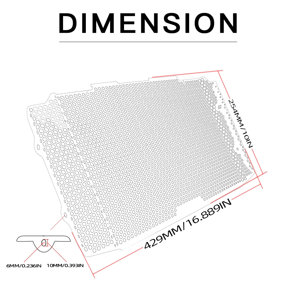 Во время езды система радиатора будет поражена большим камнем или инородным корпусом, радиатор будет легко сломан.Внешняя рама и сетчатая поверхность этого радиатора изготовлены из алюминия.Сетчатая поверхность имеет множество отверстий, что не влияет на оригинальную функцию рассеивания тепла.Он хорошо выглядит и защищает ваш радиатор.