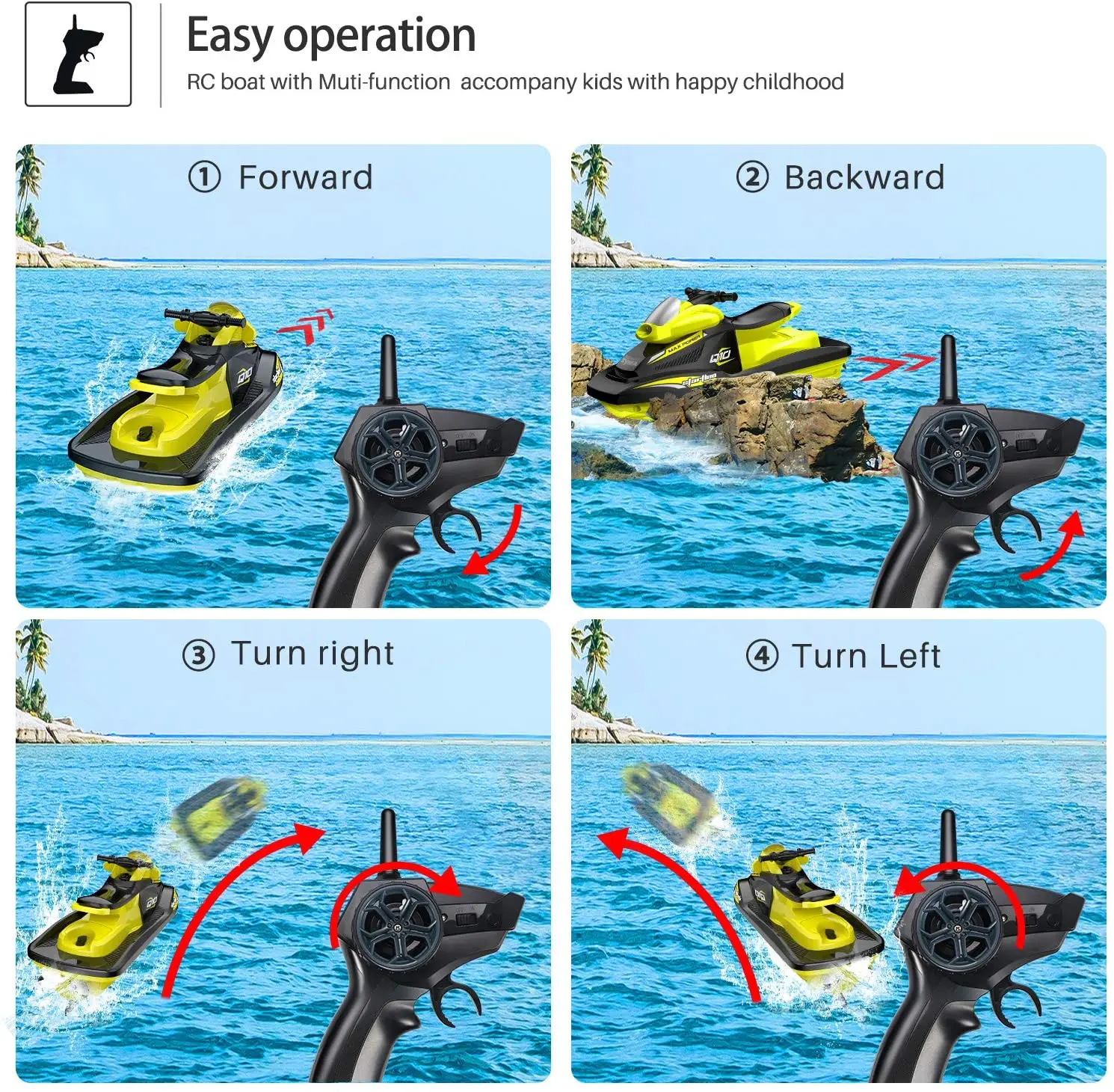 ● Положите в воду во-первых, затем включите контроллер во время игры, винт не повернет, если он был на земле. Обратите внимание, что лодка работает только в воде.