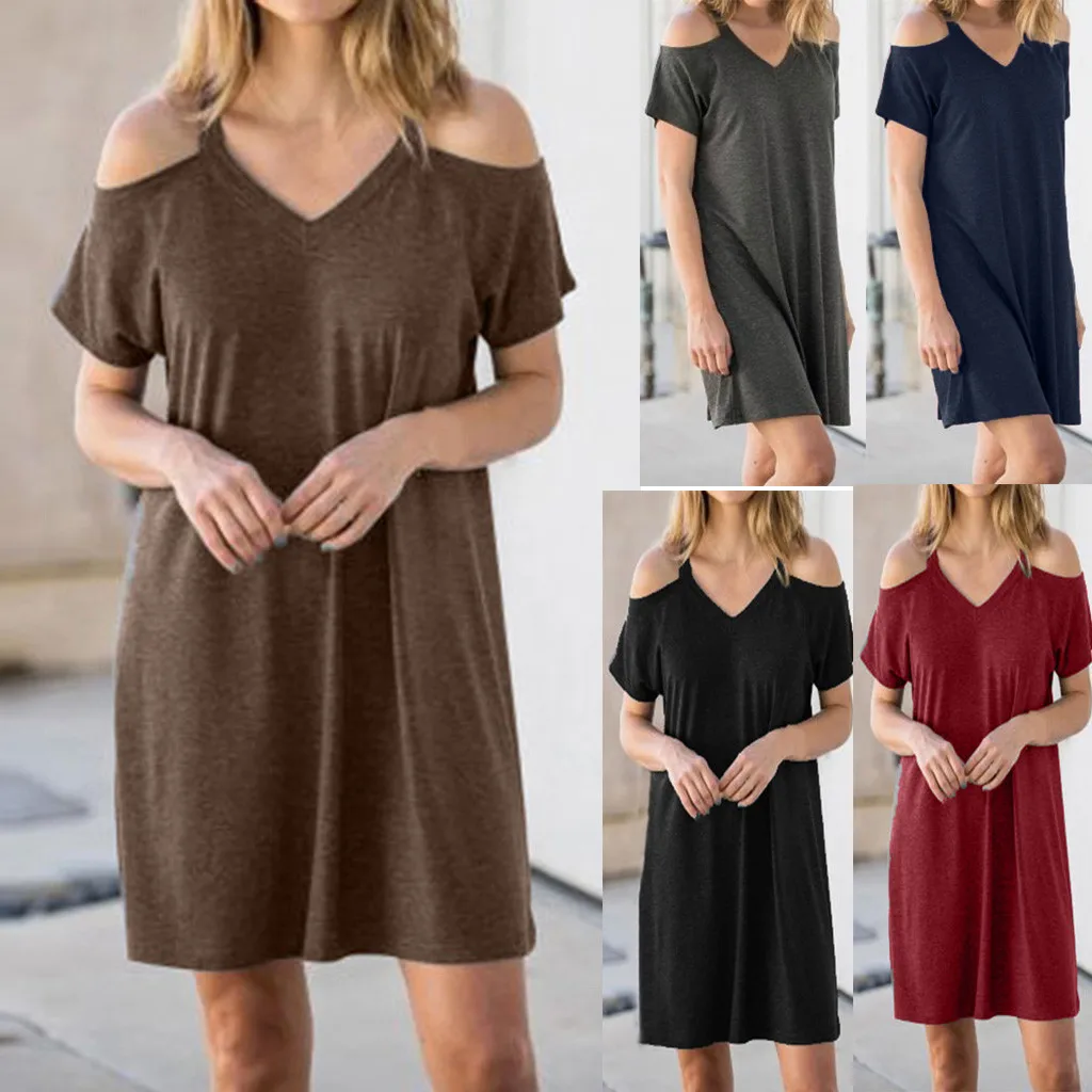 Женское летнее модное однотонное Повседневное платье на бретельках с открытыми плечами