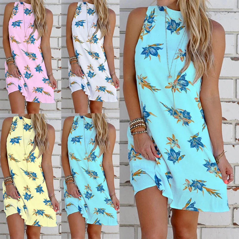 * Описание товара:Женская одежда, летняя мода, сексуальная без рукавов с воротником хомутиком, с принтом, богемное, Пляжное вечернее платье