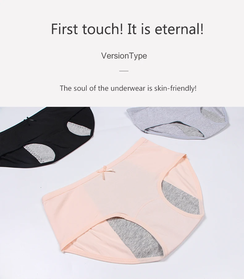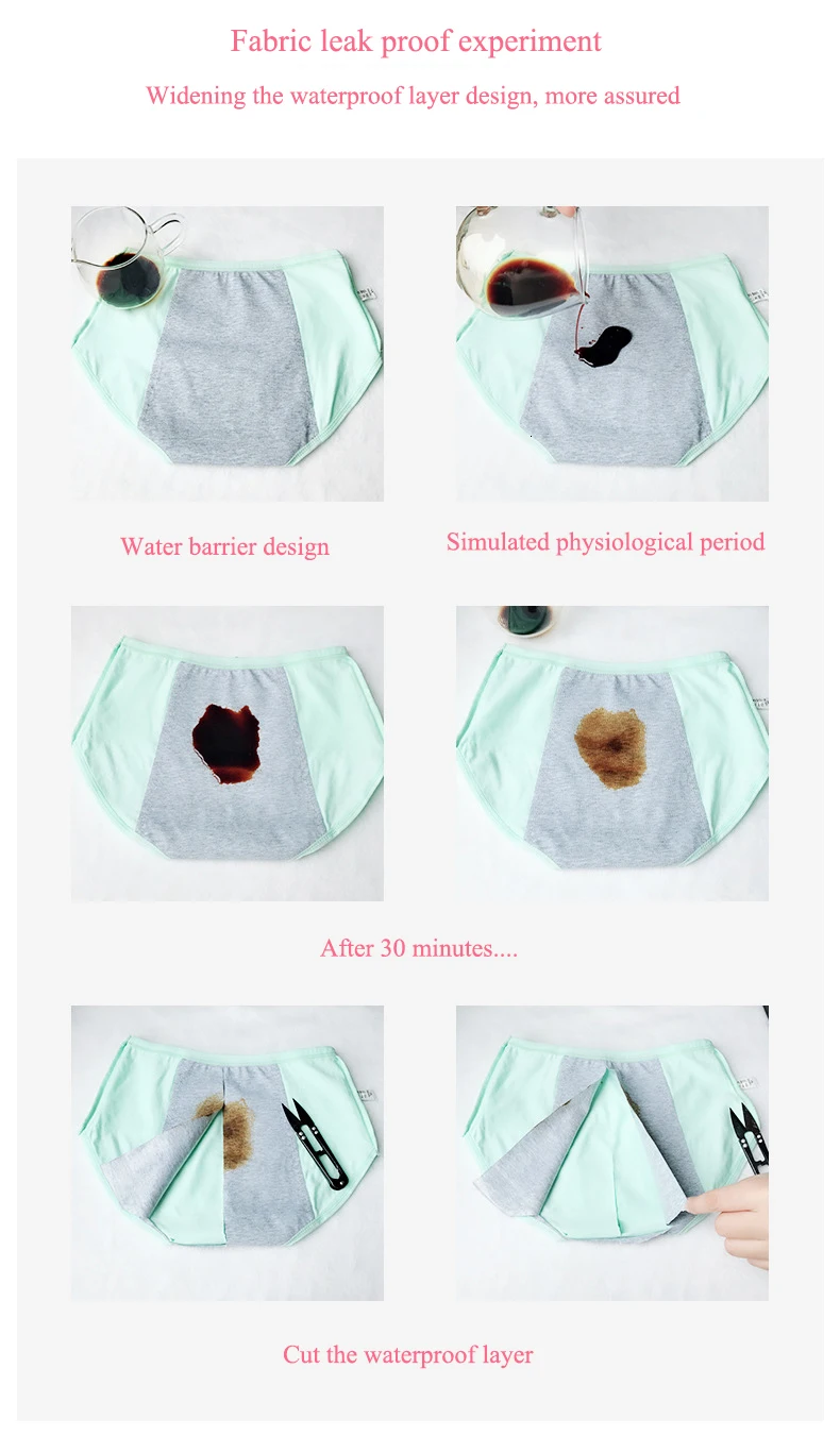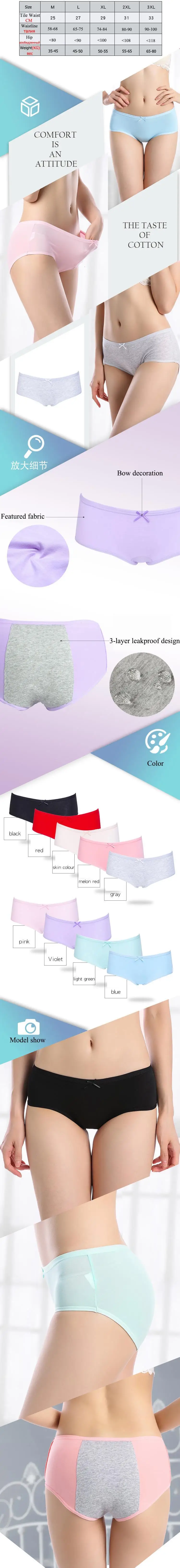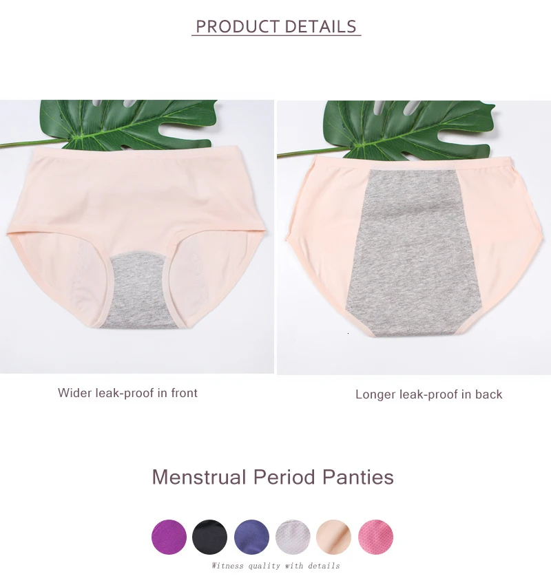 Основная характеристика менструальных трусов: 1. Высокое качество 3-х слойные, хорошо впитывают воду и герметичная ткань; 2. Очень мягкие и дышащие, заботятся о домашних условиях весь день; 3. Удлинить и расширить ткань для более эффективной защиты