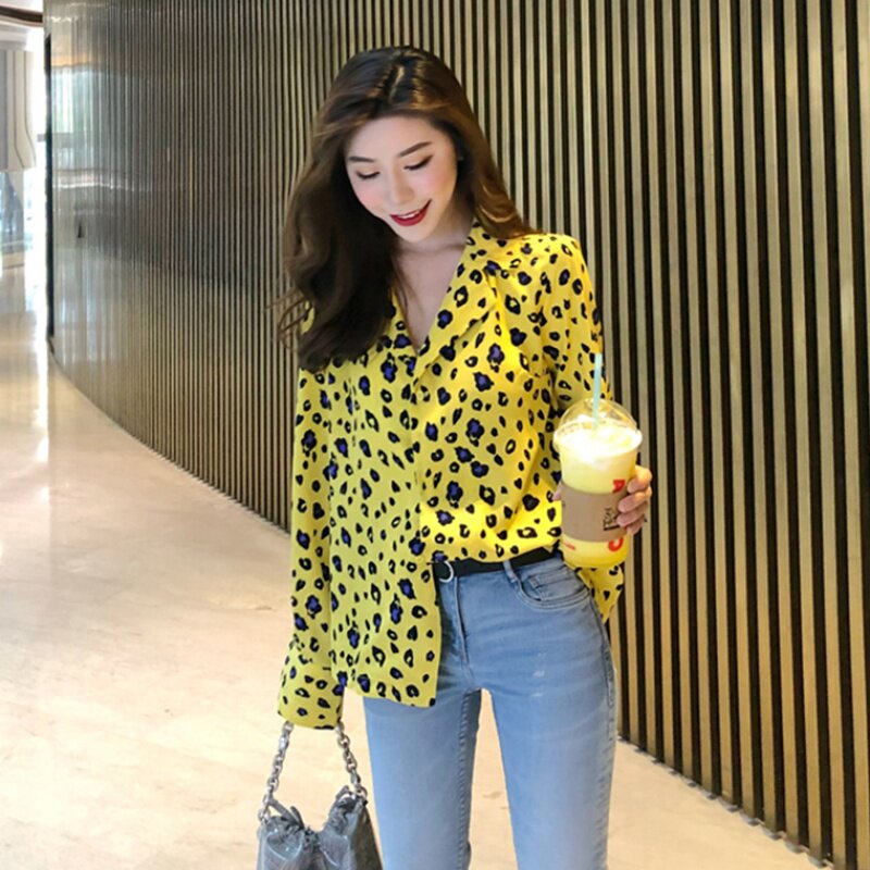 Уличная одежда с леопардовым принтом; Дизайнерские Брендовые женские блузки; Женские топы; Рубашки с отложным воротником; Цвет красный, желтый; blusa vetement femme AE163