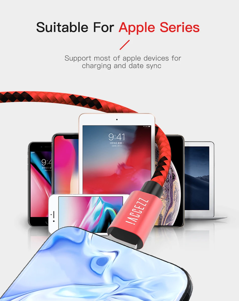 ! ACCEZZ 2.4A осветительный usb-кабель для Apple iPhone Xs Max Xr X 8 7 6 6s Plus 5s SE iPad Mini Синхронизация данных мобильный телефон зарядное устройство кабели