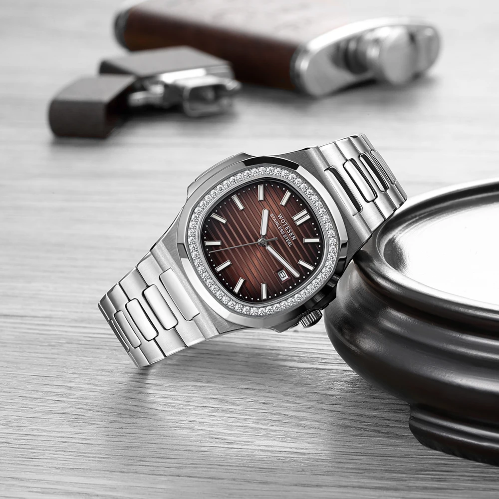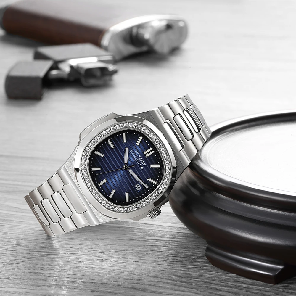 WOTESEN мужские часы лучший бренд Роскошные Алмазные кварцевые спортивные стальные