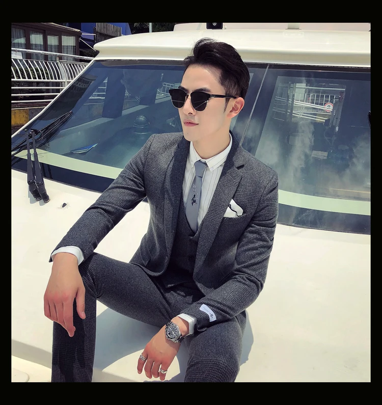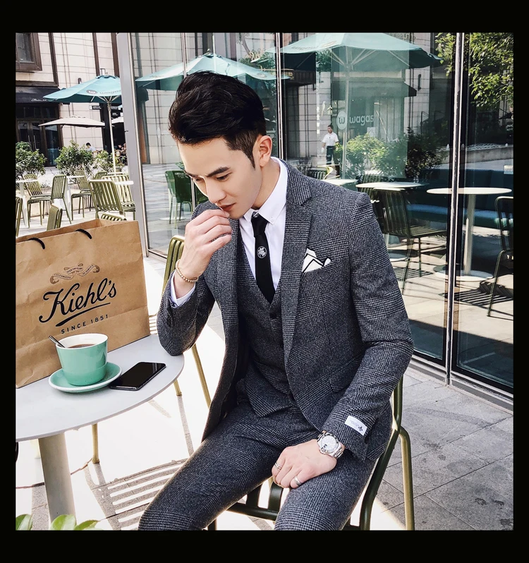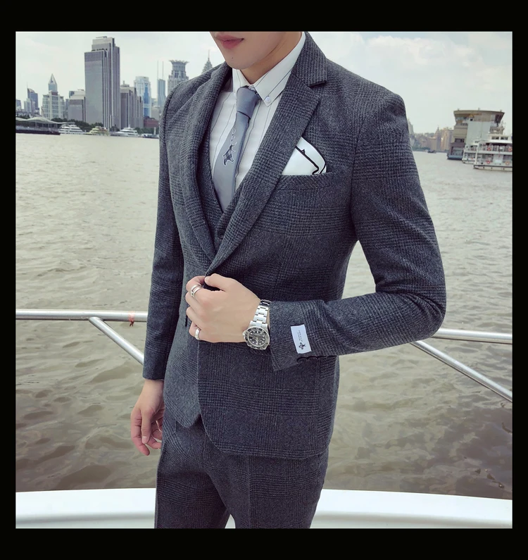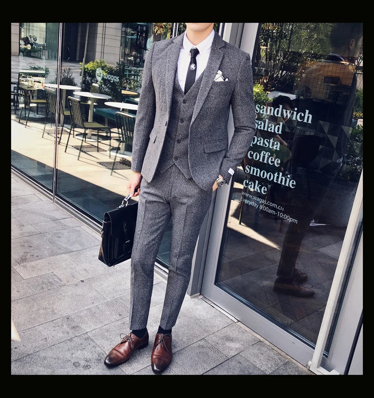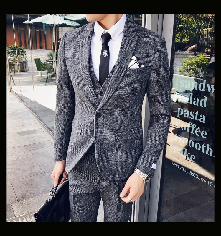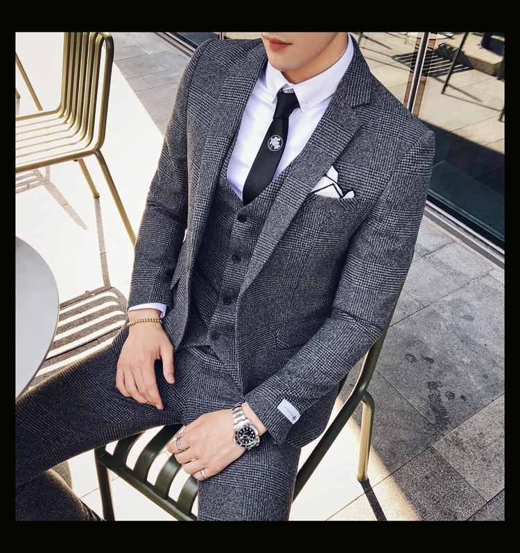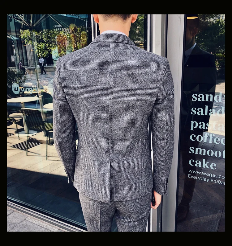 Linyixun 2018 твидовый мужской костюм с узором в елочку на заказ блейзеры свадебные