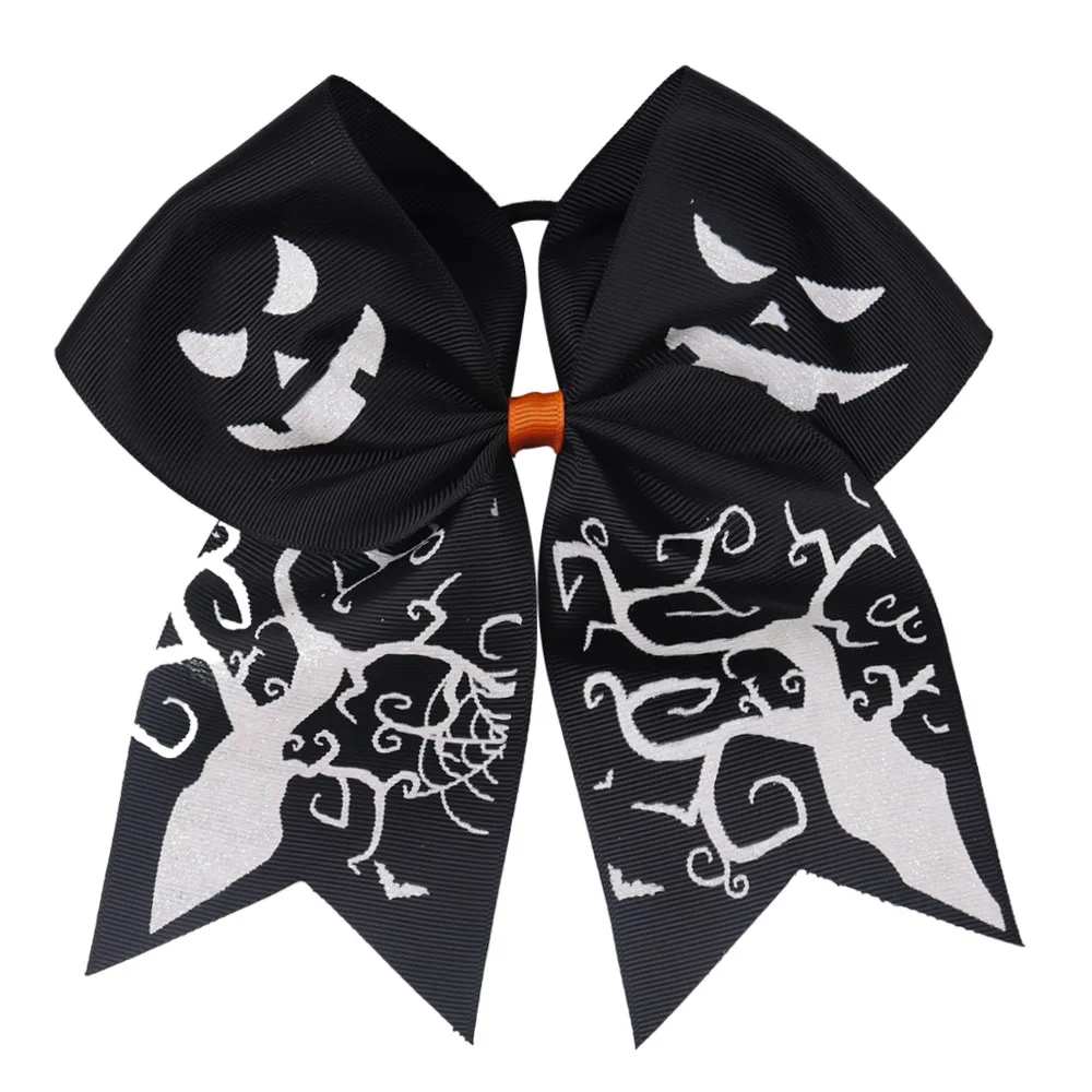 7 "Cheer банты Тыква печатные ленты банты для волос девушки Хэллоуин Вечеринка бант лента для волос ручной работы галстук для волос конский хвост аксессуары для волос