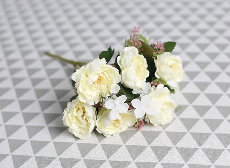100% абсолютно новые и высококачественные изделия ручной работы Наименование товара: Искусственный шёлковый пион Цвет: белый, розовый, синий, розово-красный, красный, фиолетовый, шампань, светильник розовый, темно-розовый Материал: искусственный шелк, Букет пионов розы, пластиковый стебель Размер: 4 типа Тип: 1 шт. = 7 цветочных головок + несколько листьев B Тип: 1 шт. = 6 цветочных головок + некоторые листья Искусственный цветок общая длина около 30 см (11.8in); Цветочная головка диаметром около 5,5 см (2.1in); Вес около 47 г (0.1lb) Тип C: 1 шт. = 7 цветочных головок + Гортензия + ягоды + некоторые листья Тип D: 1 шт. = 5 цветочных головок + Гортензия + некоторые листья Посылка включает в себя: 1 шт. настоящий сенсорный Искусственный розовый цветок пиона Свадебный букет (ваза не входит в комплект) Использование: Свадебный букет «сделай сам», держащий букет невесты, свадебное украшение автомобиля, свадебные аксессуары, Украшение для домашнего сада, вечерние украшения для выпускного вечера, подарок на день рождения и так далее Подходит для вечерние, свадебные, офисные, магазин, арт-зал, общественные места, дома, сада, и так далее Примечание: возможны отклонения на 1-3 см вследствие измерений вручную Различные мониторы могут слегка отличаться по цвету, пожалуйста, поймите, спасибо При отправке каждый цветок закрывает, чтобы сэкономить место. Эти цветы упакованы, могут быть плотными, Поэтому, пожалуйста, мягко Отрегулируйте цветок рукой или Используйте холодный фен для волос, чтобы открыть его.