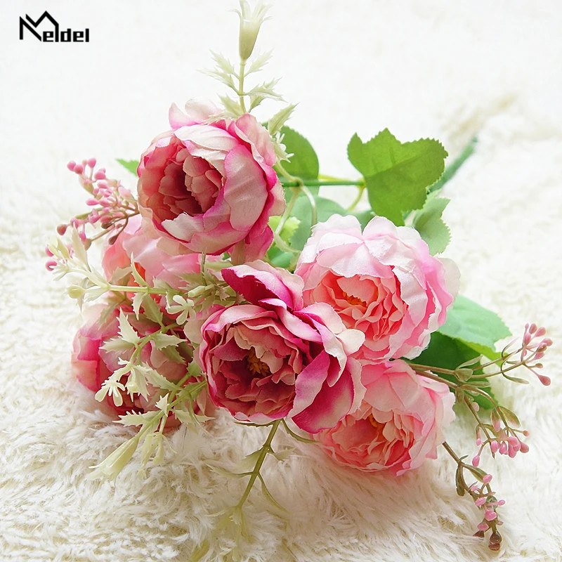 Meldel Свадебный букет невесты, искусственный шёлковый пион, розовый цветок, подружки невесты, свадебный букет, сделай сам, домашние вечерние, декор для магазина