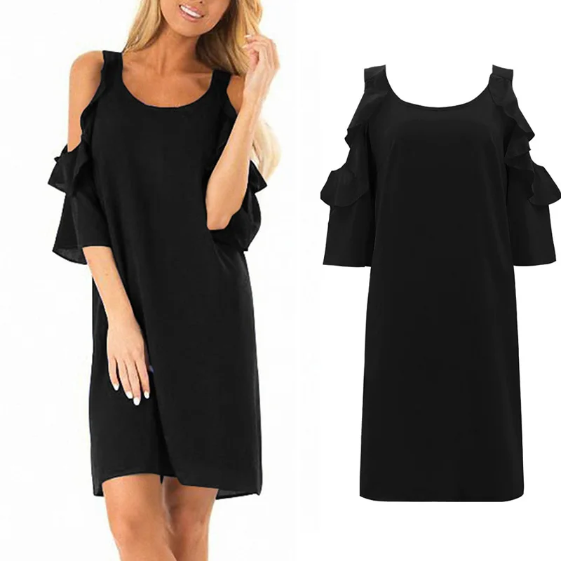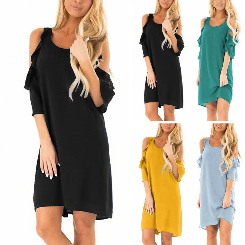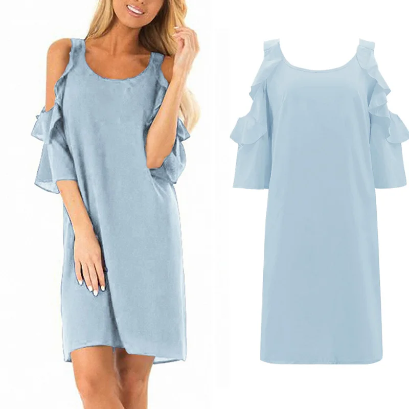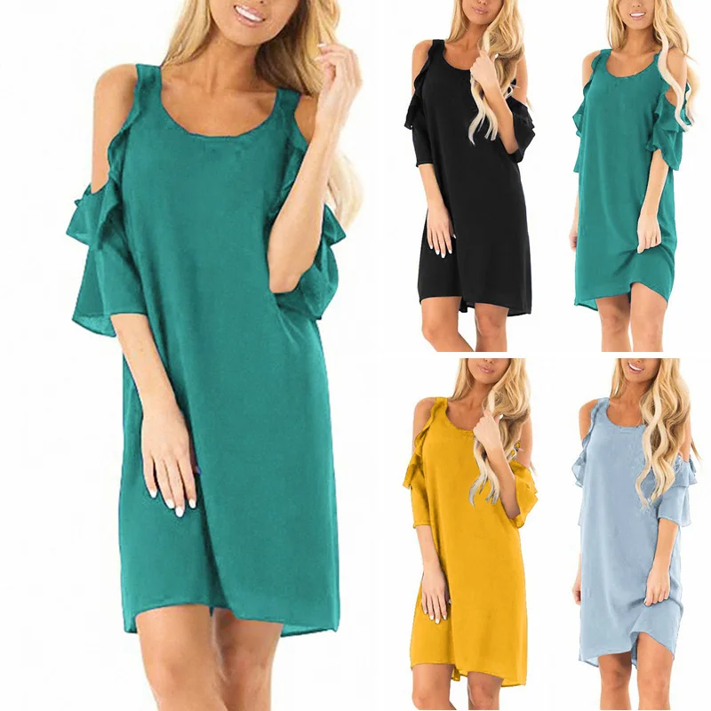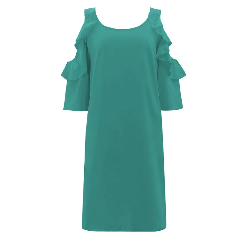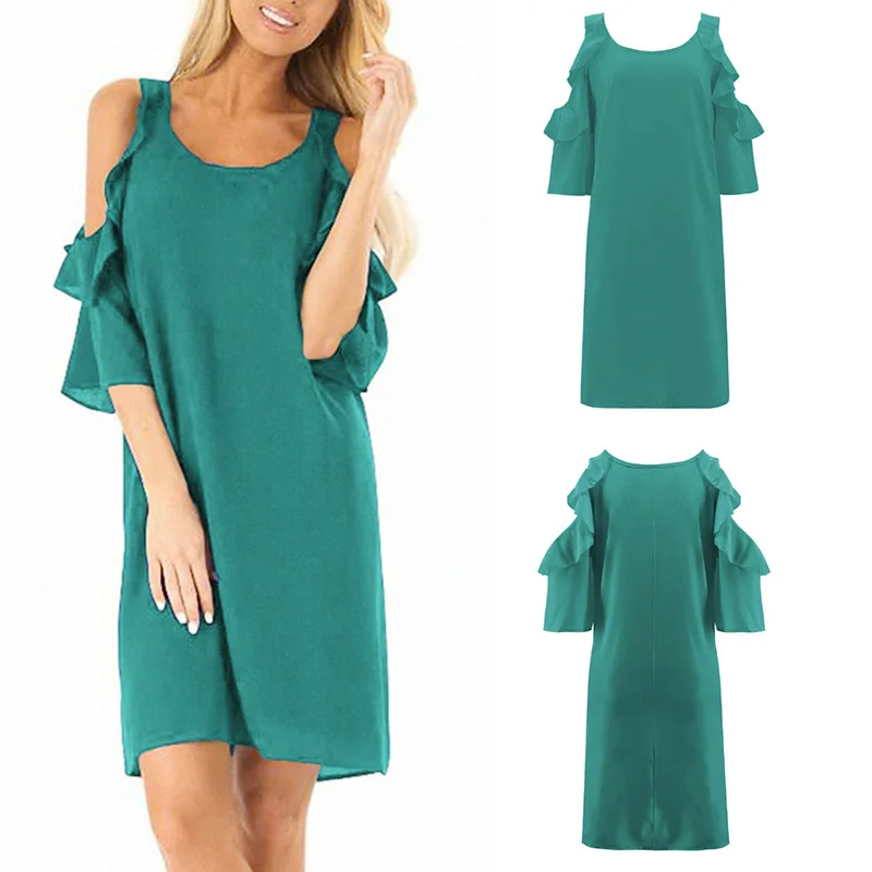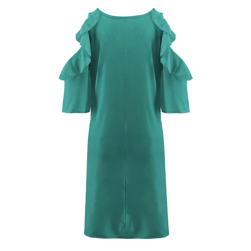 * Описание товара: круглый вырез; рукав с оборками; с открытыми плечами; свободный; пляжный; вечерние; платье миди
