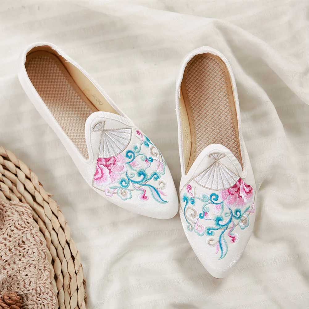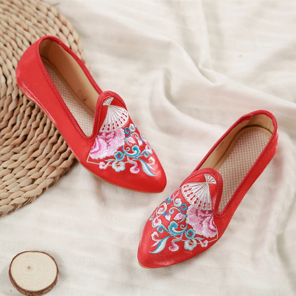 Женская обувь в китайском стиле; яркие шелковые туфли на низком каблуке с красивой вышивкой