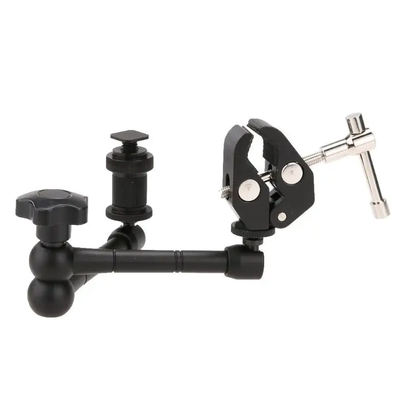 Шарнирное сочлененное Крепление: Эта волшебная рукоятка с точным дизайном, позволяет универсальным вариантам крепления Поставки 1/4 ''винтовые адаптеры для камеры, держателя лампы и других аксессуаров Шарнирный дизайн, с одной ручкой фиксирует все позиции Превосходное качество, точный и прочный дизайн Совместим с: вспышка, ЖК-монитор, светодиодный светильник с винтом 1/4" Горячий башмак адаптер, 1/4 "винт адаптер «Папа-мама» Материал: металл с пластиком Зажим: Супер Зажим идеально подходит для артикуляции Волшебной руки Может использоваться с держателем Он используется для DSLR rig, студийные продукты, такие как светодиодный светильник, ЖК-монитор и другие аксессуары Поставляется с резьбой 1/4 "и 3/8" Изготовлен из прочного алюминиевого сплава Макс. Нагрузка до 2,5 кг Минимальный диаметр отверстия: около 0,39 дюйма/1 см Максимальный диаметр отверстия: около 1,97 дюйма/5 см Цвет: черный Размер: approx.2.24 x3.15x0.79inch / 6x8x2 см (при закрытии зажима L x W x H) 1X11 "Волшебная рука Зажим-1 шт.