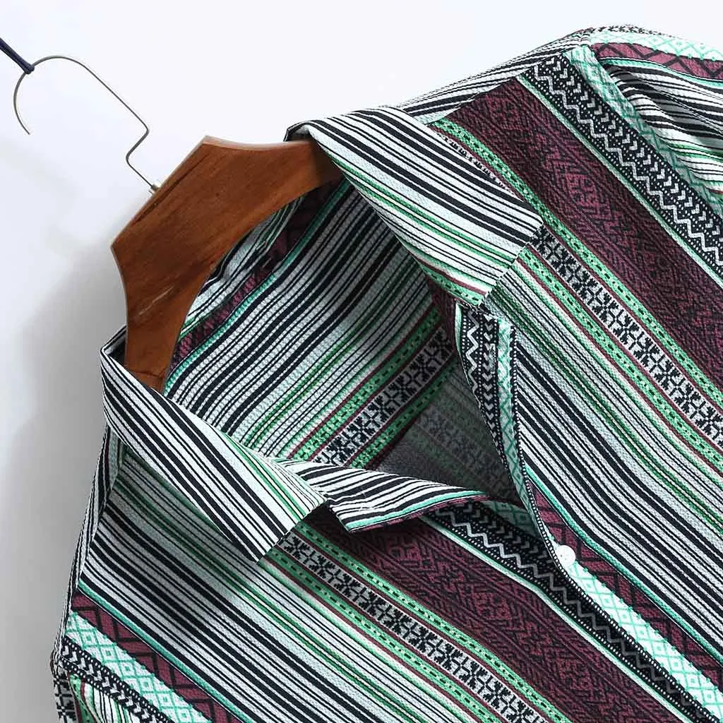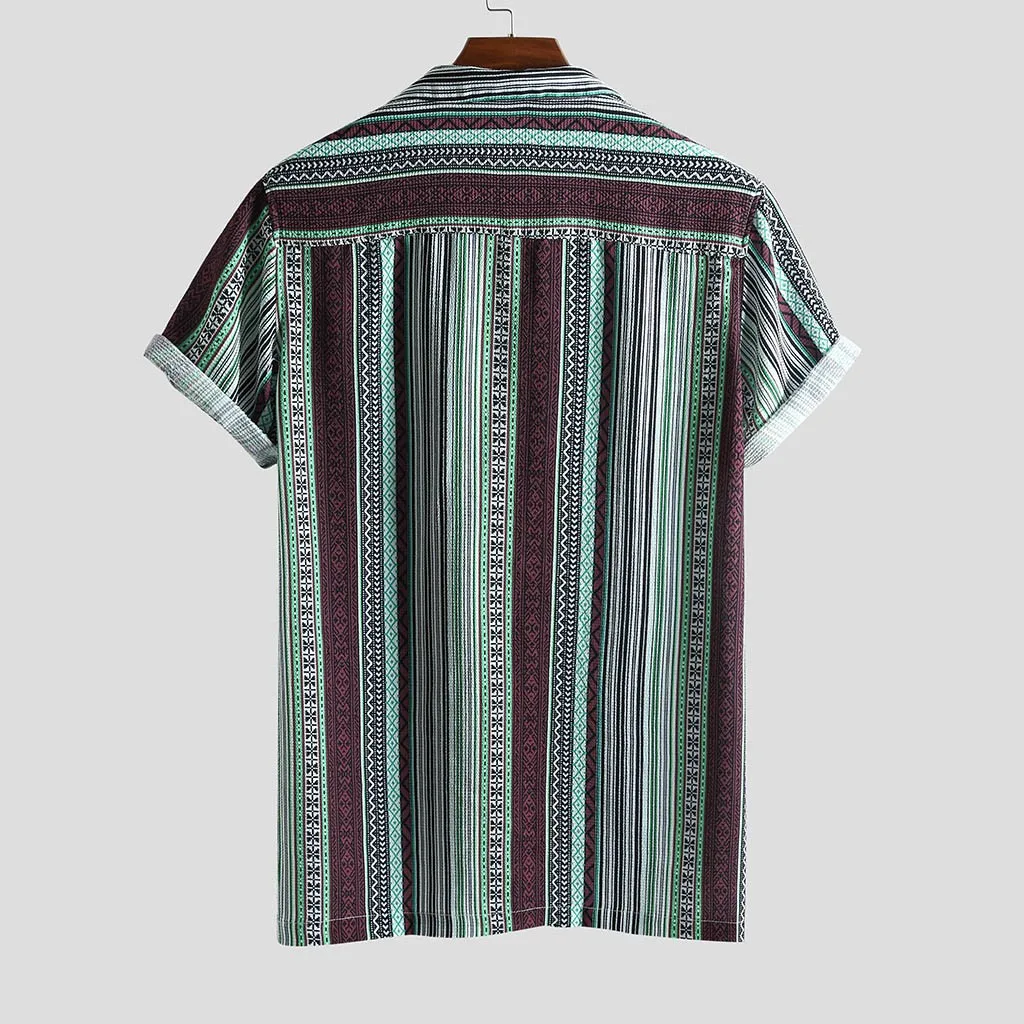 Мужская разноцветная полосатая летняя Свободная рубашка с коротким рукавом и пуговицами на каждый день