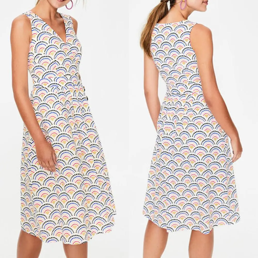 * Описание товара: сексуальный, v-образный вырез, без рукавов, Повседневный, приталенный, с принтом, богемный, пляжный