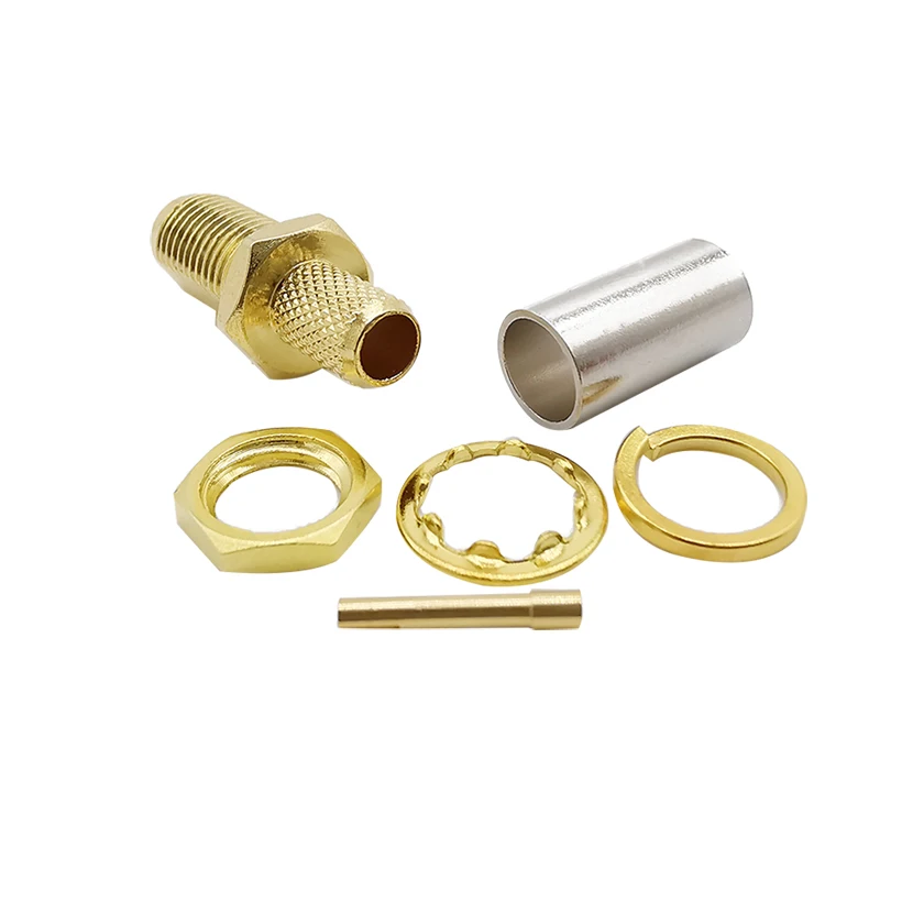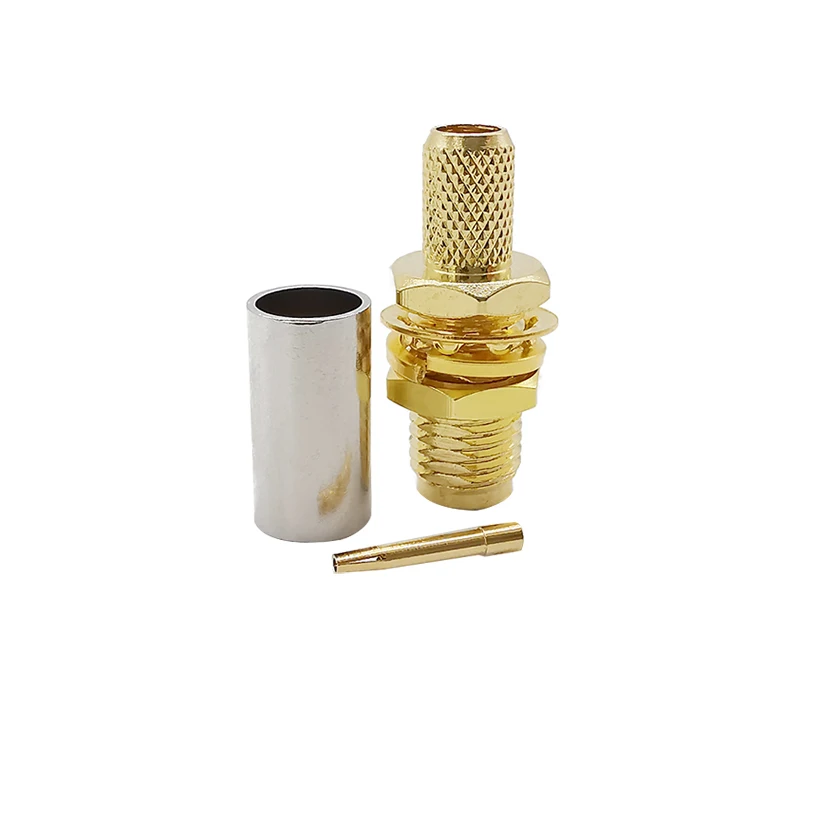 SMA Женская вилка ОБЖИМНАЯ Центральная гайка переборка RF коаксиальный позолоченный прямой разъем для кабеля RG58 RG142 LMR195 RG400