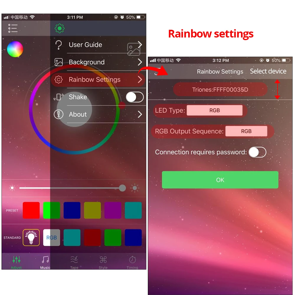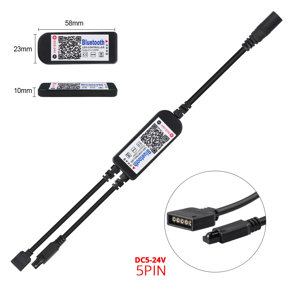 Название продукта: светодиодный контроллер Bluetooth Напряжение: 5-24 В постоянного тока Характеристики: беспроводное управление Bluetooth/Управление приложением Тип: светодиодный контроллер Рабочая температура (с):-20 ~ 60 Температура хранения (с):-40 ~ 70 Работа контроллера bluetooth: Откройте Bluebooth поиск и сопряжение с «счастливым освещением» Откройте приложение happy светильник ing led, приложение будет автоматически подключать BLE светильник A. Регулировка: изменение цвета светодиода Rgb и белого светодиода B. Музыка: воспроизведение музыки и Изменение Rgb светодиодного цвета с помощью музыкального ритма C. Режим: изменение цвета светодиода Rgb с помощью входного голосового ритма микрофона D. Узоры: изменение цвета светодиода Rgb по фиксированной модели E. Расписание: таймеры, Автоматическое включение/выключение F. Настройка: Встряхивание: изменить светодиодный RGB цвет, встряхнув телефон; Музыкальный хоп: светодиодный RGB Цвет Изменен музыкой