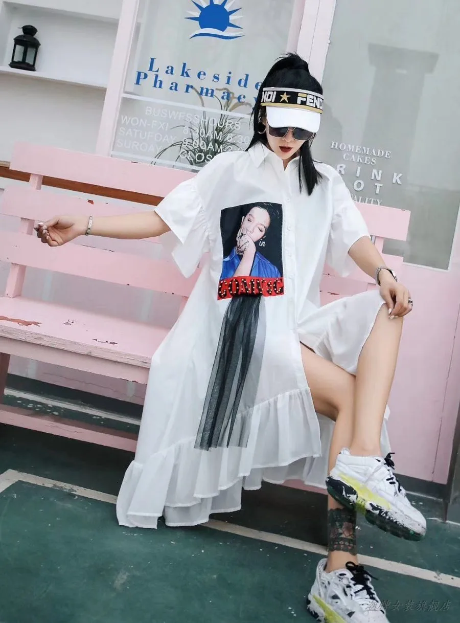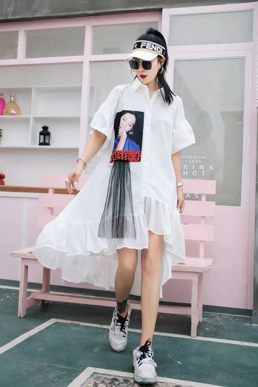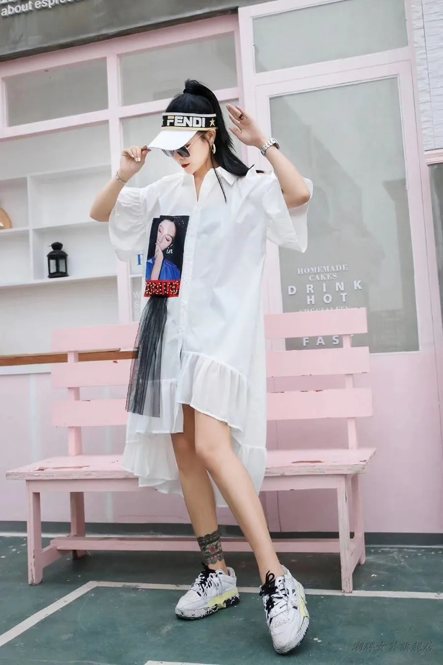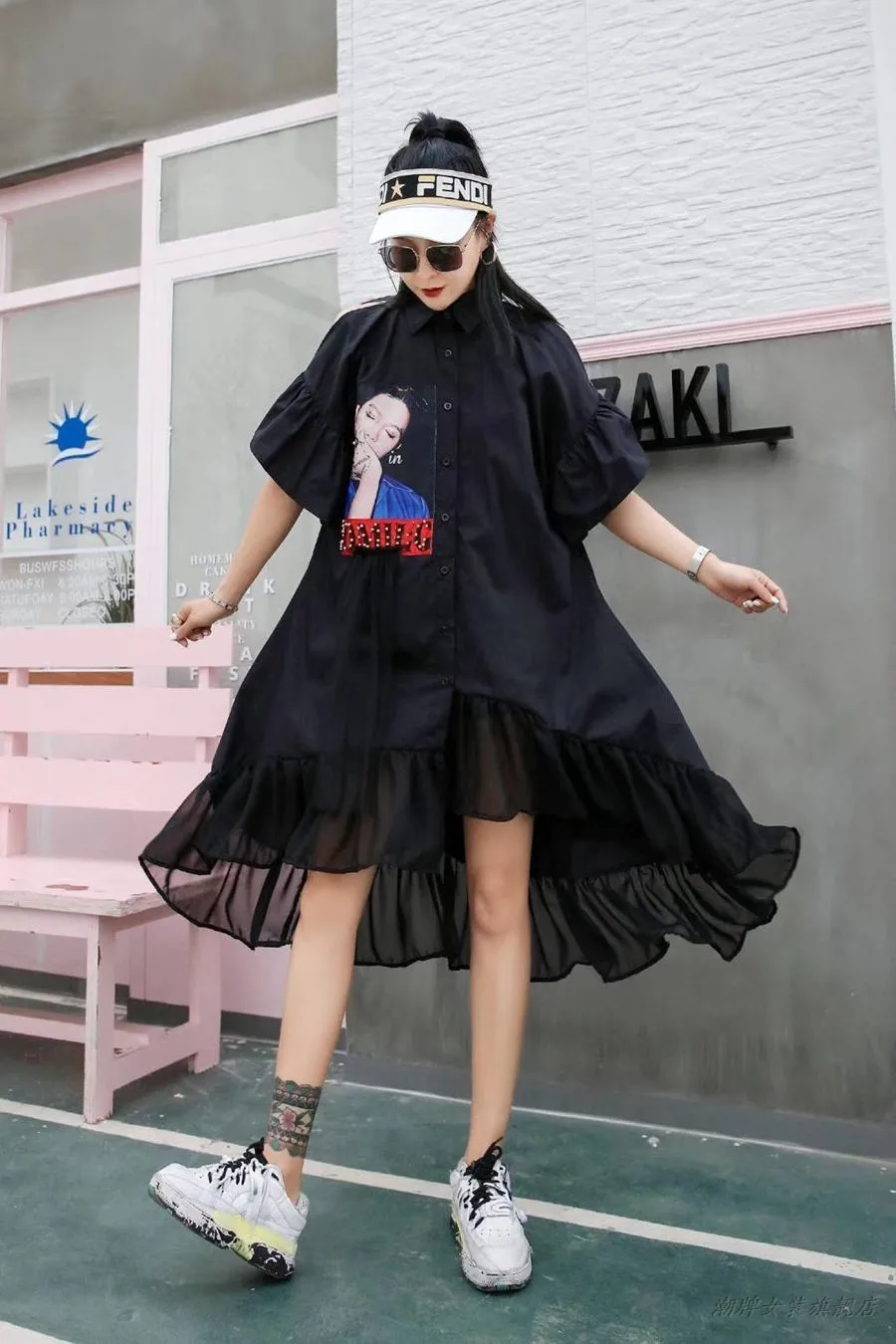 Vefadisa Для женщин черный, белый цвет Красота Платье с принтом Для женщин отложной воротник блузка