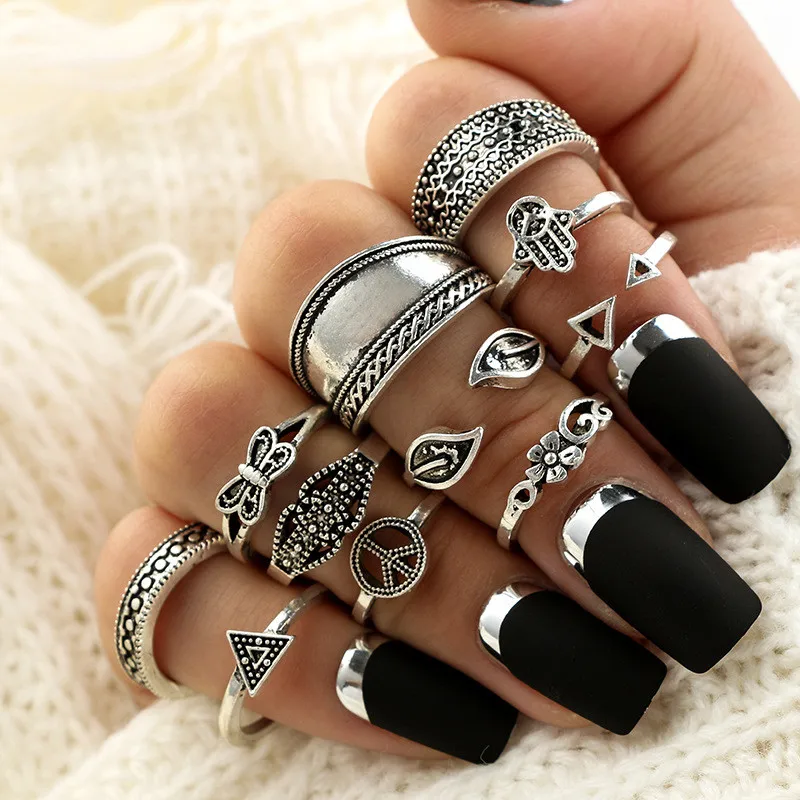 Ювелирный Набор Женский богемский Винтажный серебряный набор колец выше суставов, набор синих колец