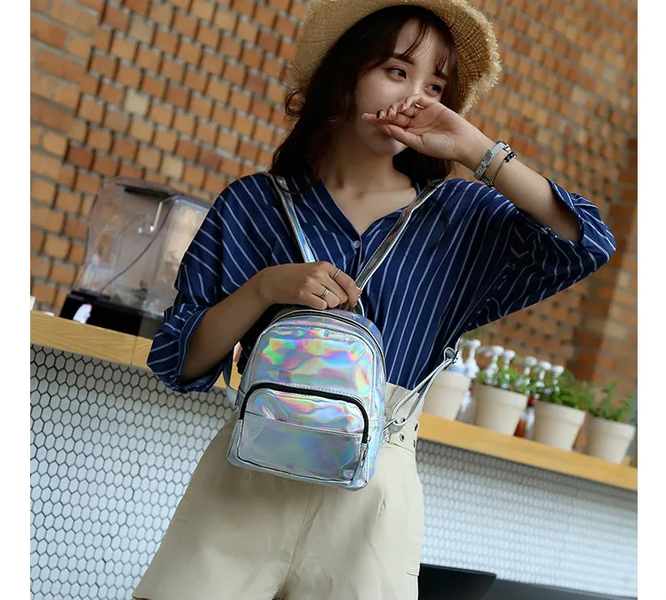 Женская маленькая голографическая сумка, лазерный кожаный рюкзак для подростков, для девочек, Kawaii, мини рюкзак для путешествий, розовый, серебристый, сумка на плечо, Mochila