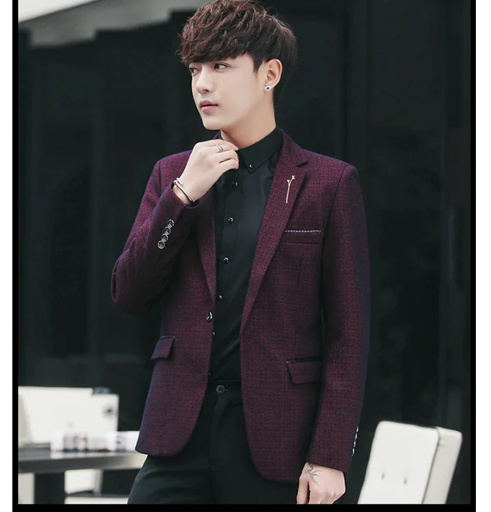 Костюм мужской маленький из полиэстера тонкий тренд двух частей|Пиджаки| |