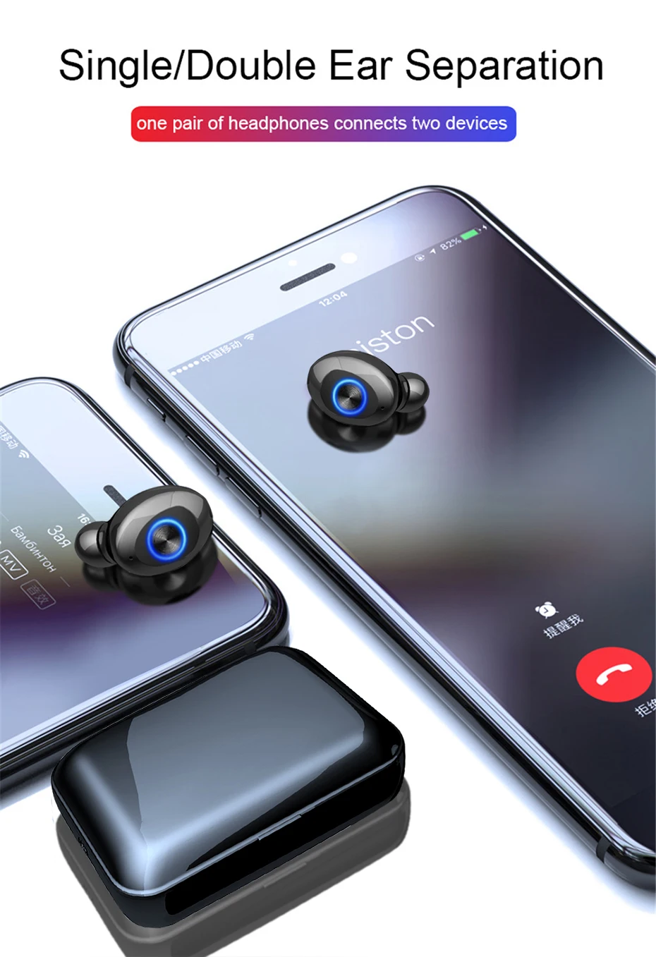 Версия Bluetooth: V50 BT8832A Время вызова: 4-5 ч Время воспроизведения музыки: 4-5 ч Время зарядки: 1-2 ч Температура окружающей среды:-10C-55 C Вход: 5 V 1.5A Выход: 5 В 200 мА
