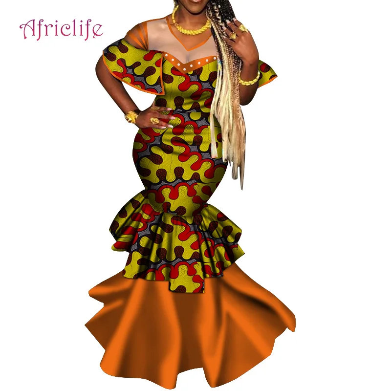 Одежда с жемчугом для женщин, специальные шифоновые Лоскутные африканские модели одежды, плиссированная юбка, длинное женское длинное платье с принтом, WY4872