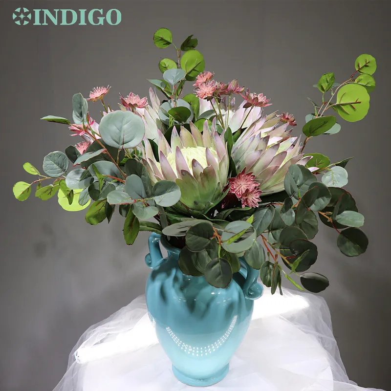 Название цветка: настоящий сенсорный Протей цинароиды Общая длина цветка: 75 см Размер цветка: 16x13 см Материал цветка: (настоящий сенсорный материал) Количество цветов: 50 стеблей Цена не включает вазу