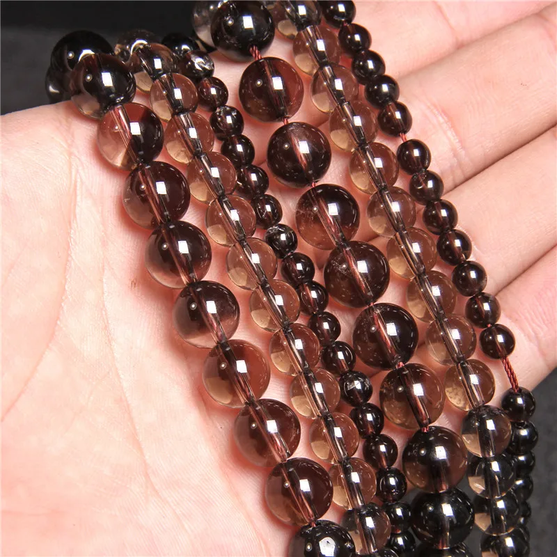 Бусы из натурального камня, дымчатый Quartzs с украшением в виде кристаллов Свободные Spacer Бусины для самостоятельного изготовления ювелирных изделий браслет ожерелье 15 ''Размеры: 4/6/8/10/12 мм
