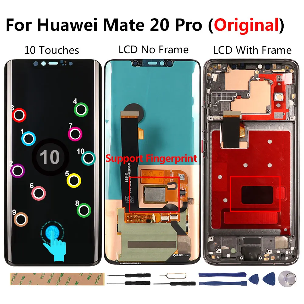 Оригинальный дисплей для Huawei Mate 20 Pro LCD 10 касаний OLED экран Замена Поддержка отпечатков пальцев для Mate 20 Pro LYA-L09 L29