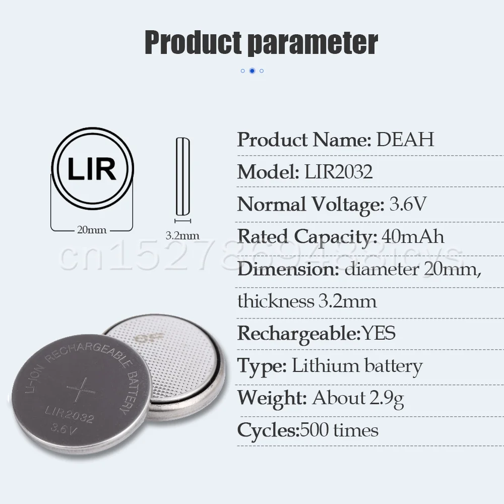 100 шт. 3,6 V 40 мА/ч, LIR2032 LIR 2032 Литиевый ПЕРЕЗАРЯЖАЕМЫЙ Аккумулятор для дистанционный пульт часы материнская плата компьютера кнопочный элемент CR2032