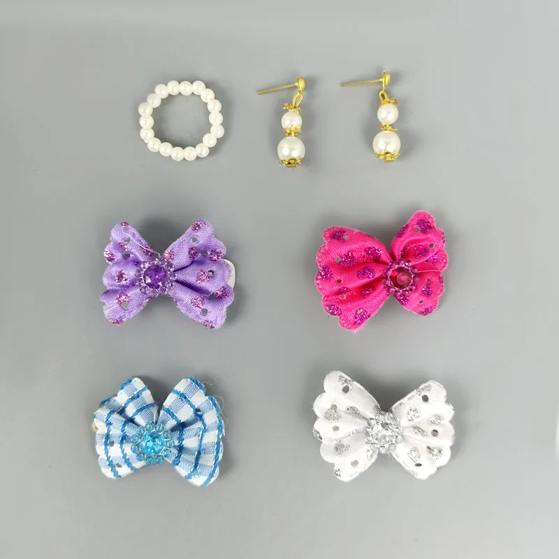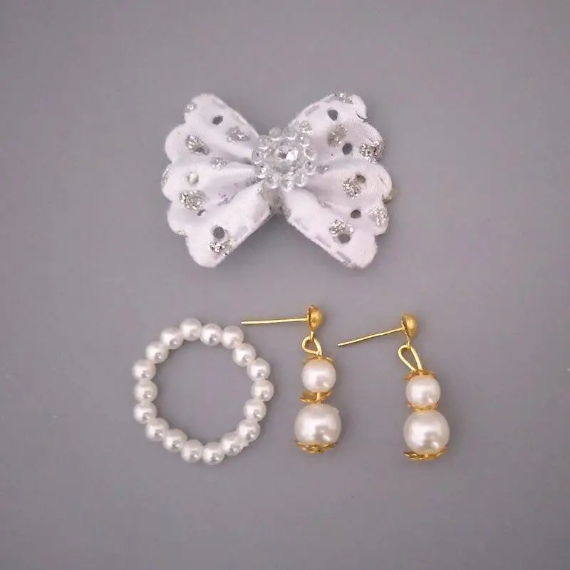 Имитация жемчуга, ювелирные изделия для куклы Барби, ожерелье, модное украшение, бант, серьги для волос, для кукол BJD, 1/6, аксессуары для кукол