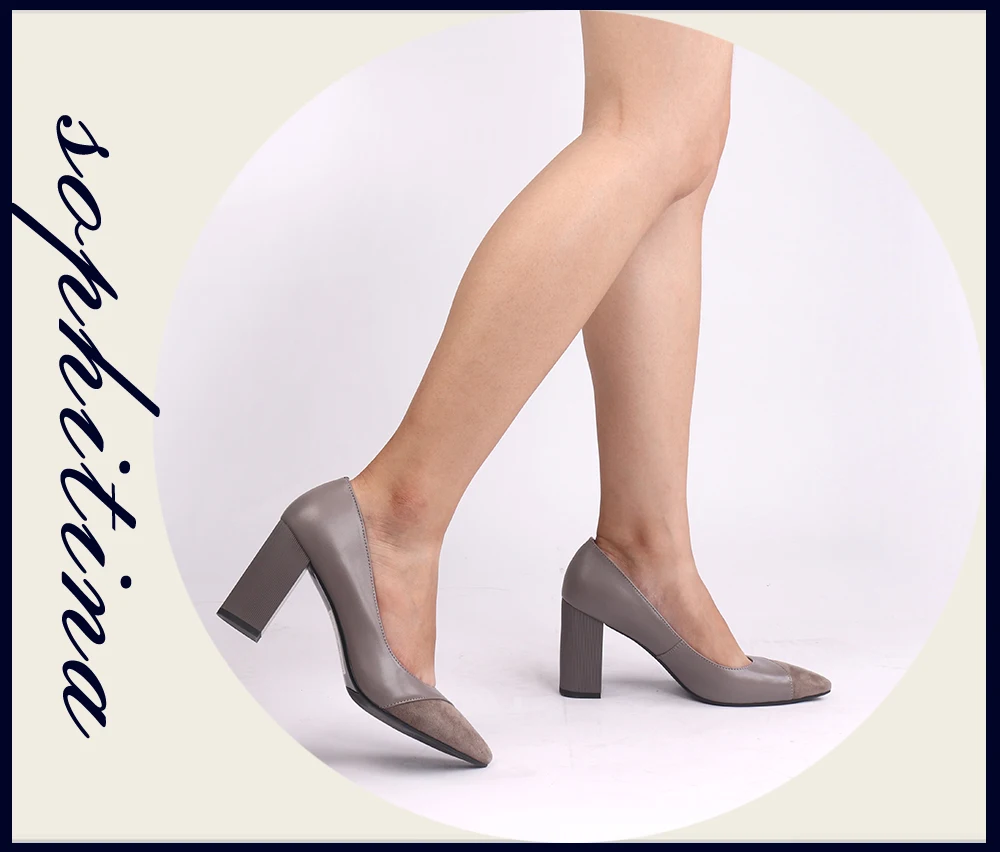 SOPHITINA/Новая женская обувь на все сезоны. Удобные женские туфли-лодочки из натуральной кожи и замши, подкладка из свиной кожи на квадратном каблуке. Модные замшевые туфли высокого качества с острым носком без застежки. SC141